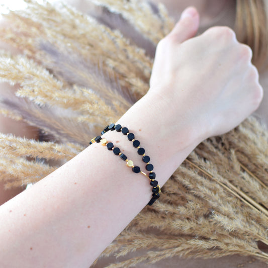 Double Black Amber Tablet Bead Bracelet: Subtly Luxurious Elegance