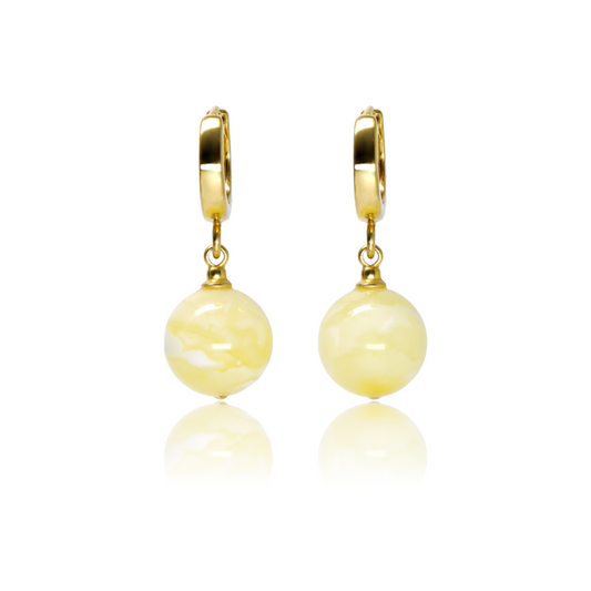 Gold Plated Silver Earrings with Unique Baltic Amber