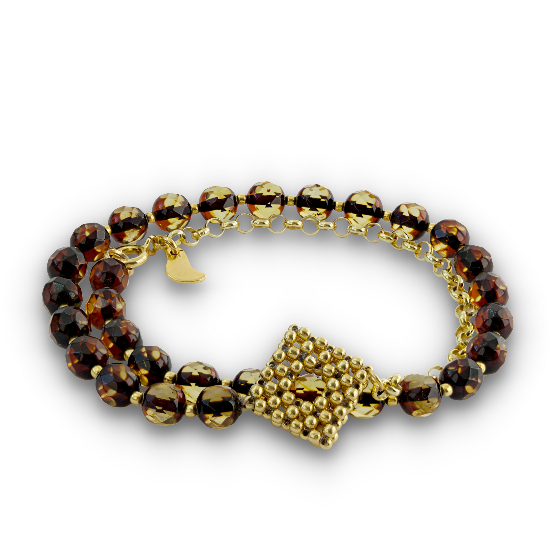 This stunning Smoky Amber Bracelet is crafted from gold-plated silver and features diamond accents. The natural earth minerals make this piece a unique addition to any jewelry collection. An elegant mix of beauty and sophistication, this bracelet is sure to become one of your favorites.