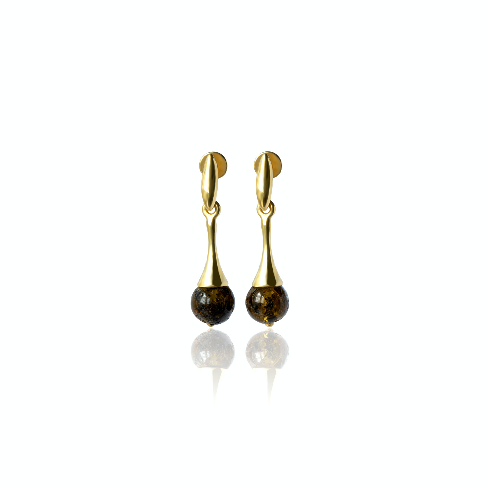These unique earrings feature natural Baltic amber in a unique and striking design. The elegant and sophisticated earrings are sure to make a statement and make the perfect gift for any special occasion. The natural amber is delicate and eye-catching, perfect for any jewelry collection.