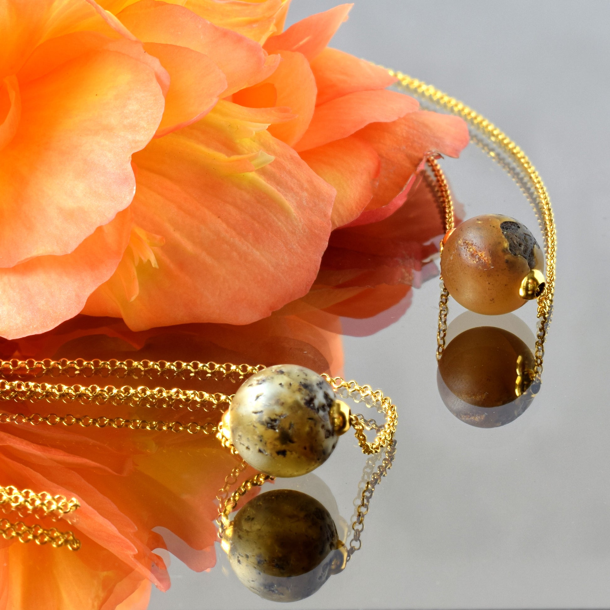 Unique Baltic Amber Pendant with Gold Plated Silver chain